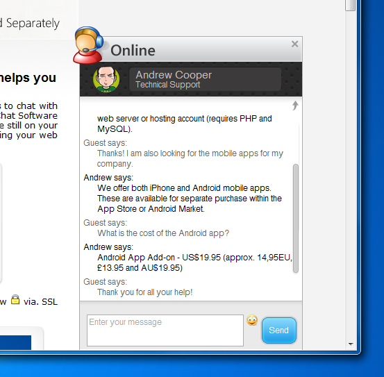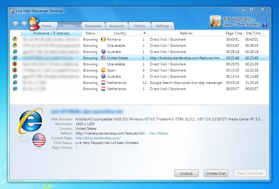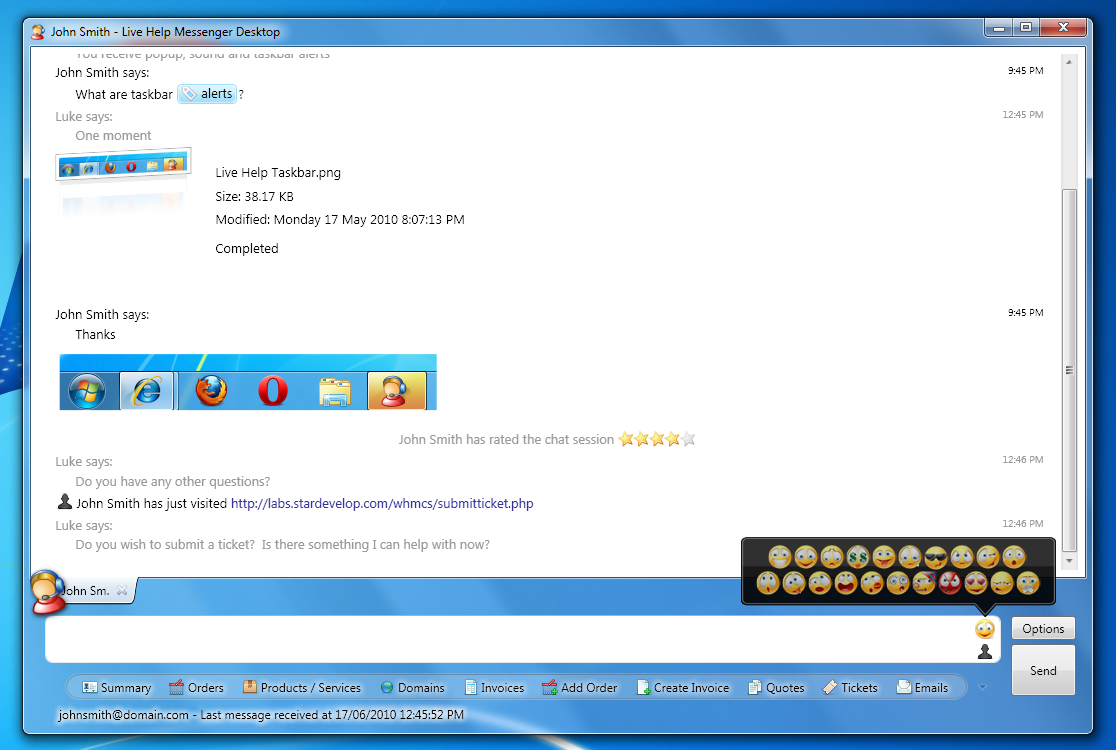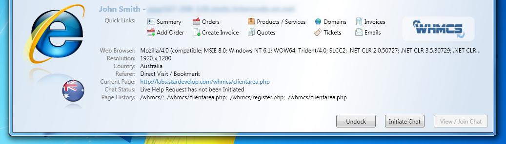 The WHMCS Live Chat Addon is developed in partnership with Stardevelop, bringing WHMCS users a powerful integrated live chat/visitor tracking solution that includes a Windows Desktop Client to monitor visitors and handle chats.
